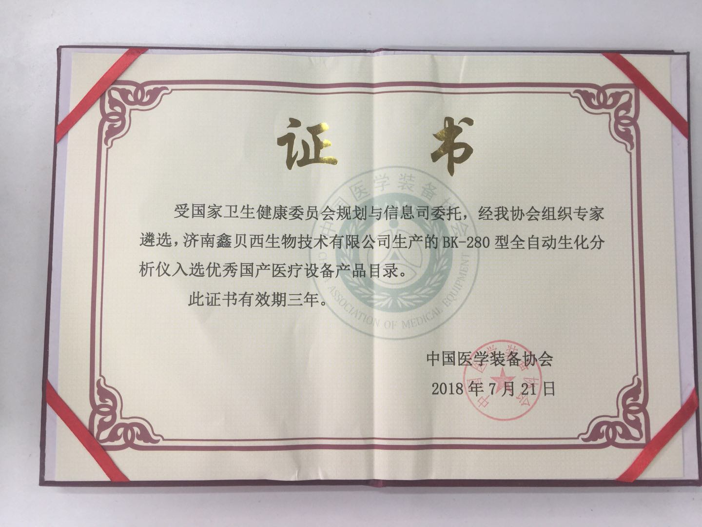 熱烈祝賀BIOBASE系列全自動生化分析儀七個型號全部入選優秀國產醫療設備產品目錄