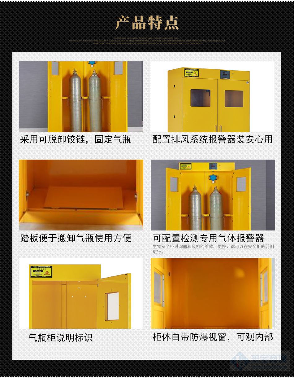 柜體底部設(shè)有可調(diào)節(jié)踏板,方便氣瓶裝卸。