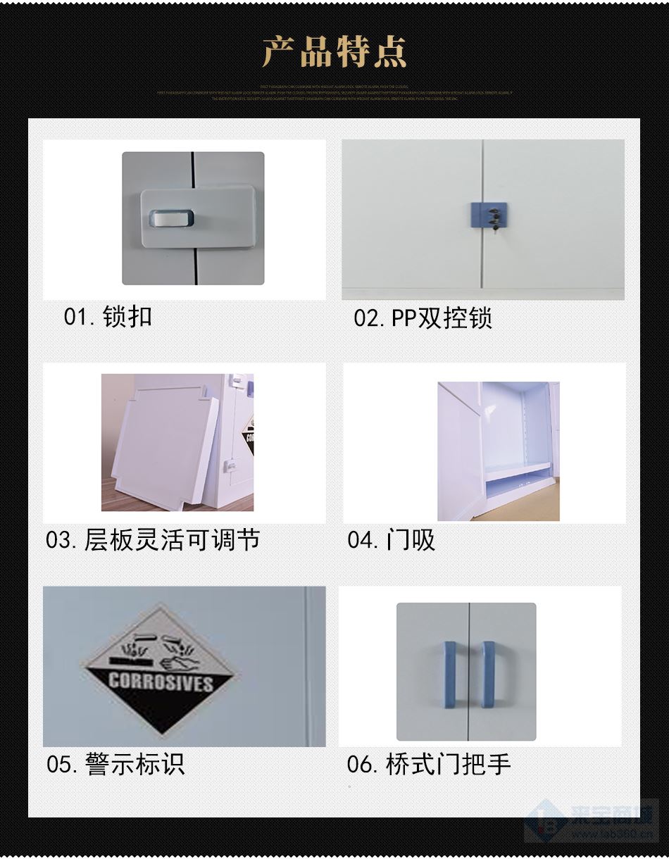 OLB系類強酸強堿存儲柜,特別針對強腐蝕性化學(xué)品的存儲和防滲漏而設(shè)計,使用存放具有強腐蝕性的化學(xué)品物質(zhì)(例如硫酸、鹽酸、KOH、NaOH等化學(xué)品物質(zhì))。