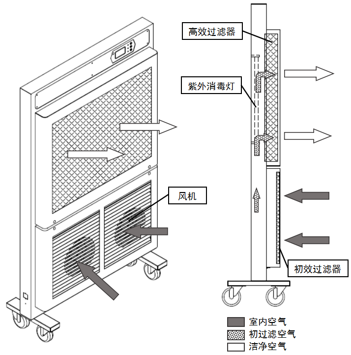 適用于實驗室、檢驗科、病理科、普通手術室、負壓病房、發熱門診、輸液室、ICU重癥監護室等科室及醫院走廊、大廳等人員聚集的區域,還可用于食品、制藥、博物館等行業中。