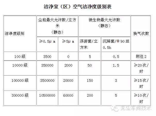 凈化工程等級(老規范,僅參考)