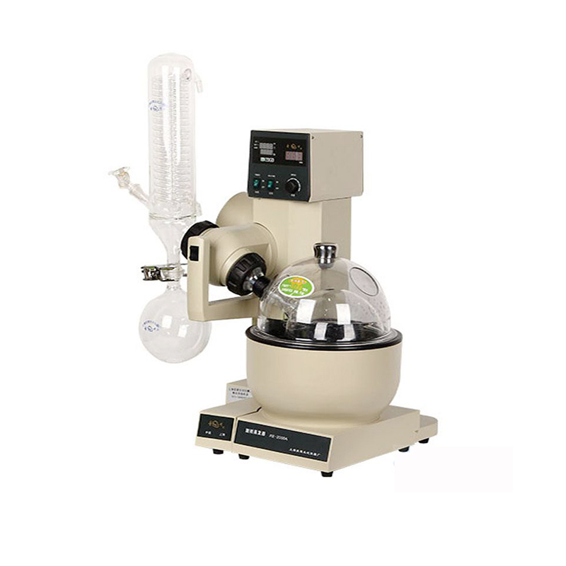 作為蒸餾的熱源,常配有相應(yīng)的恒溫水槽。通過(guò)電子控制,使燒瓶在最適合的速度下,恒速旋轉(zhuǎn)以增大蒸發(fā)面積。通過(guò)真空泵使蒸發(fā)燒瓶處于負(fù)壓狀態(tài)。蒸發(fā)燒瓶在旋轉(zhuǎn)同時(shí)置于水浴鍋中恒溫加熱,瓶?jī)?nèi)溶液在負(fù)壓下在旋轉(zhuǎn)燒瓶?jī)?nèi)進(jìn)行加熱擴(kuò)散蒸發(fā)。旋轉(zhuǎn)蒸發(fā)器系統(tǒng)可以密封減壓至 400~600毫米汞柱;用加熱浴加熱蒸餾瓶中的溶劑,加熱溫度可接近該溶劑的沸點(diǎn);同時(shí)還可進(jìn)行旋轉(zhuǎn),速度為50~160轉(zhuǎn)/分,使溶劑形成薄膜,增大蒸發(fā)面積。此外,在高效冷卻器作用下,可將熱蒸氣迅速液化,加快蒸發(fā)速率。