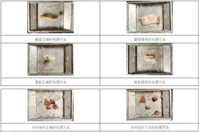組織的包埋關(guān)系到診斷的準(zhǔn)確性,如囊壁、管腔組織等組織必須豎直包埋。包埋時(shí)如果是成堆組織,一般采用組織的最大面包埋,如果組織是平切的,應(yīng)該按照醫(yī)生取材的要求,把朝下的面作為包埋面。小塊多顆組織,應(yīng)盡量放在一起,并保證在一個(gè)平面上。對(duì)于一些需要切出層次的標(biāo)本如:胃黏膜活檢標(biāo)本,不能按一般的規(guī)律取最大包埋面,應(yīng)采取窄長(zhǎng)的面豎包;如果是U,V字形的,也應(yīng)該按U,V字的形狀豎包,這樣才能切到組織的全層。