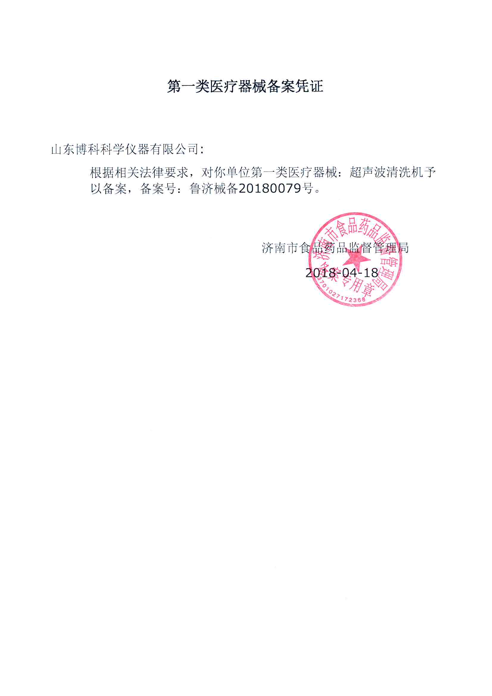 博科科學儀器公司取得超聲波清洗機產品的備案憑證和信息表