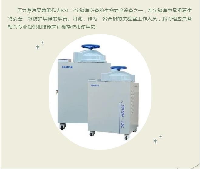 壓力蒸汽滅菌器作為BSL-2實驗室必備的生物安全設備之一,在實驗室中承擔著生物安全一級防護屏障的職責。因此,作為一名合格的實驗室工作人員,我們理應具備相關專業知識和技能來正確操作和使用它。