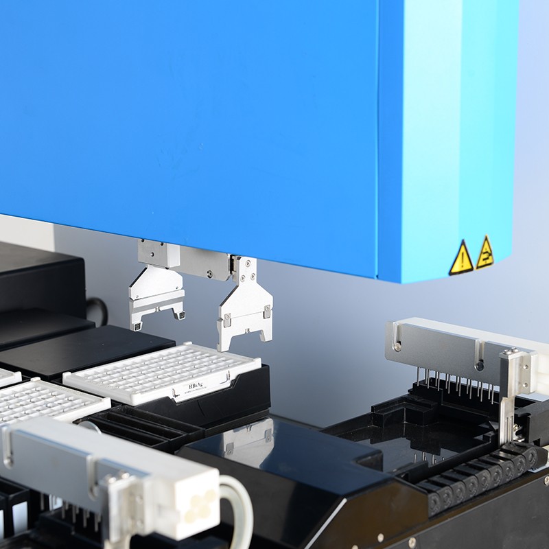 十一、機(jī)械臂:二個(gè)智能機(jī)械臂,一個(gè)用于標(biāo)本和試劑分配,一個(gè)用于抓板;配備全智能壓力感應(yīng)式機(jī)械抓手,壓力感應(yīng)系統(tǒng)實(shí)時(shí)監(jiān)測(cè)抓板狀態(tài),防止掉板。